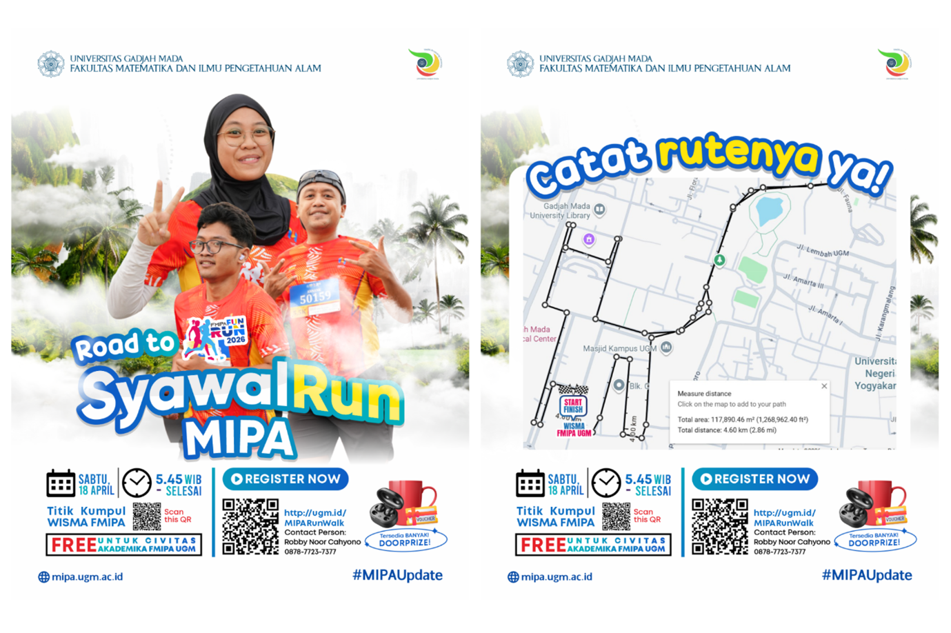 Kegiatan yang dilaksanakan pada Sabtu (18/4) pagi ini dimulai tepat pukul 05.45 WIB dengan titik start dan finish di Wisma FMIPA UGM. Agenda ini dirancang sebagai sarana recharge energi bagi mahasiswa, dosen, maupun tenaga kependidikan agar kembali bugar sebelum memulai rutinitas akademik pasca-ujian.