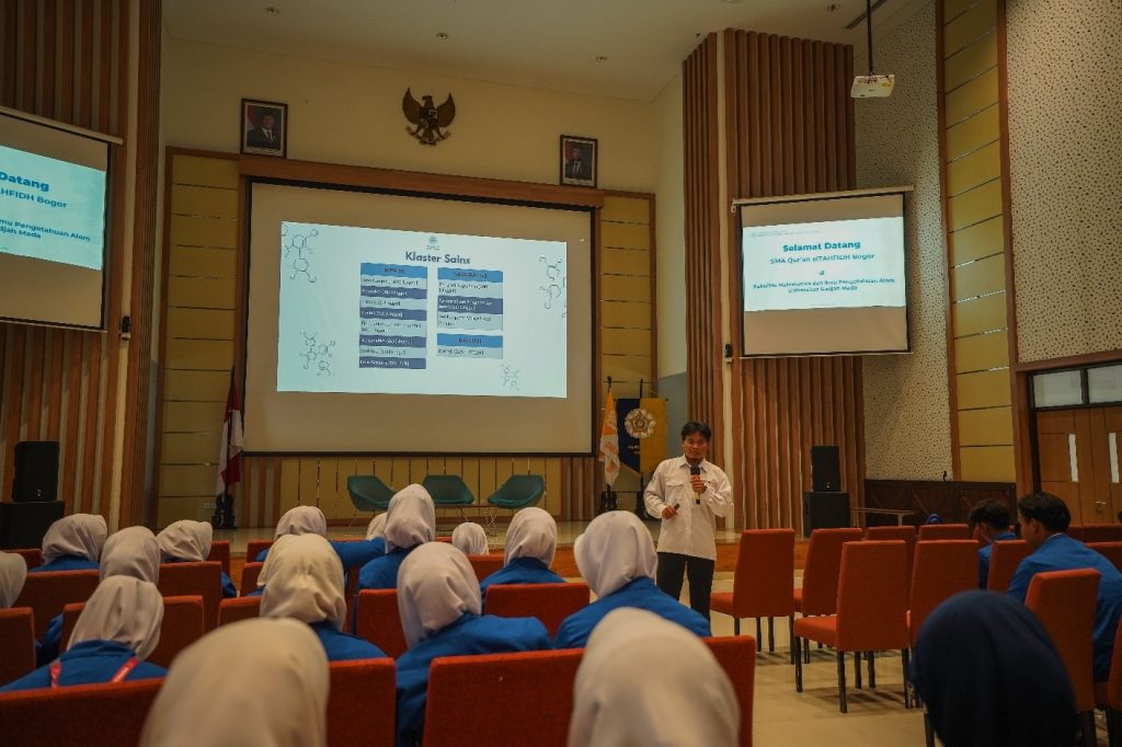 Fakultas Matematika dan Ilmu Pengetahuan Alam (FMIPA) Universitas Gadjah Mada (UGM) menerima kunjungan yang dilaksanakan pada Senin, 3 November 2025 oleh SMA Qur’an elTAHFIDH Bogor. Kegiatan kunjungan berlangsung di Auditorium Herman Yohannes FMIPA UGM dan menghadirkan Chalis Setyadi, S.Si., M.Sc., Ph.D., selaku Sekretaris Unit Pendukung, Pendidikan, Pengajaran, dan Kemahasiswaan, sebagai narasumber.