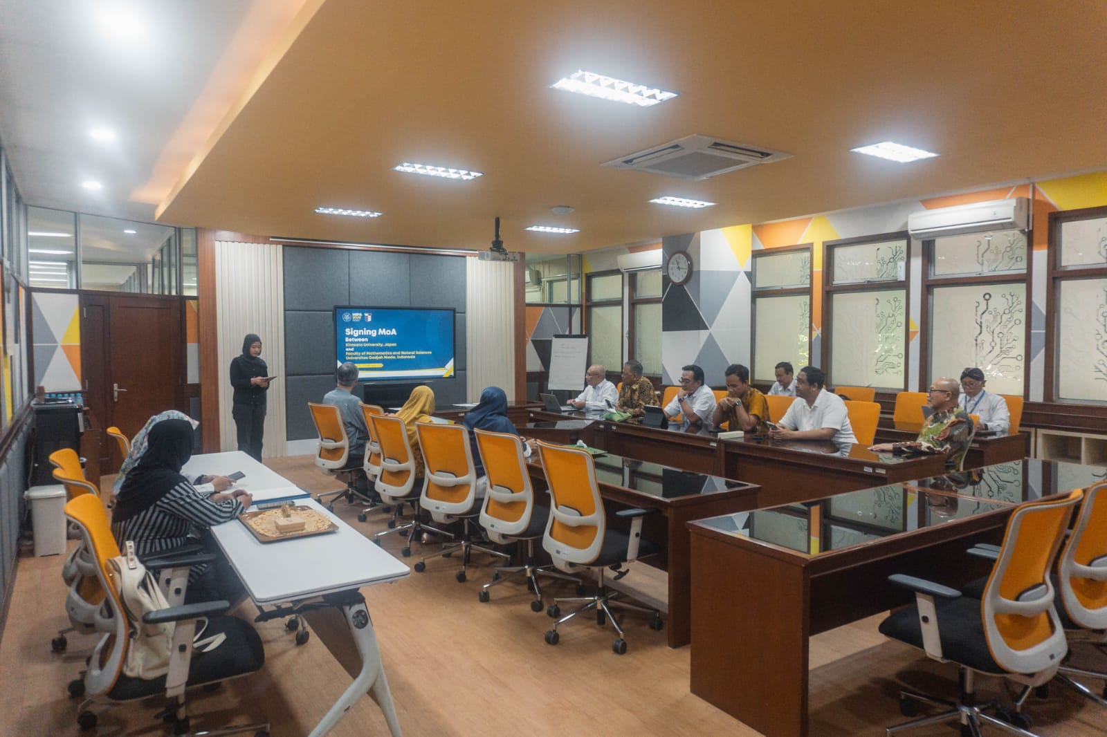 Dalam agenda tersebut, Prof. Yasubumi Sakakibara menyoroti sejumlah irisan keilmuan yang dinilai relevan untuk dikembangkan bersama. Wakil Dekan FMIPA, Prof. Roto, dalam presentasinya juga menegaskan bahwa FMIPA merupakan core cluster untuk sains dasar dan komputasi. Menurutnya, penguatan fondasi sains dan ilmu komputasi menjadi kunci dalam mendorong riset kolaboratif yang berdaya saing global.